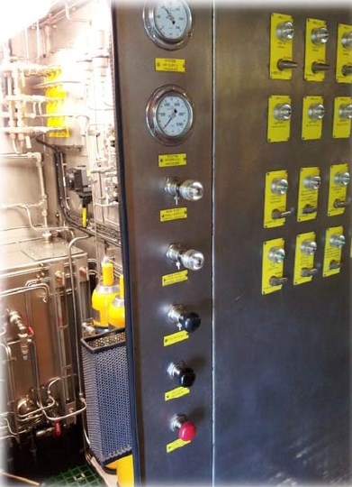 All pressure levels can be read out on pressure gauges installed on the front-side of the control panel.